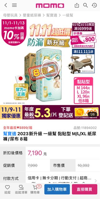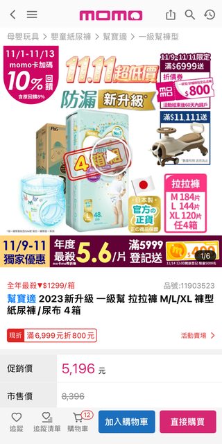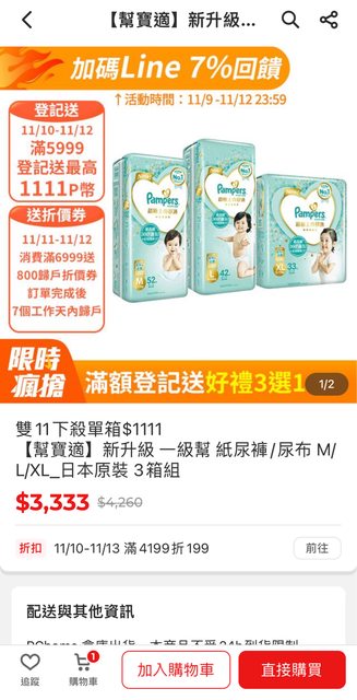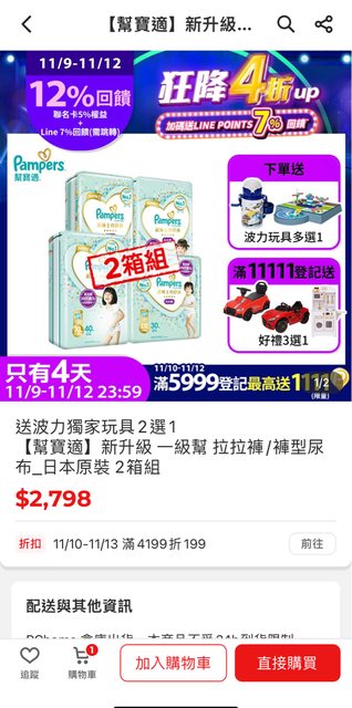 標題[情報] 雙11幫寶適滿6999回饋2000
