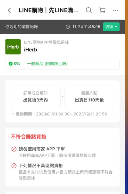 2 下單記得開LINE購物APP,LINE購物導購,可以獲得3% Line點 https://i.imgur.com/Sb1gLPs.jpg