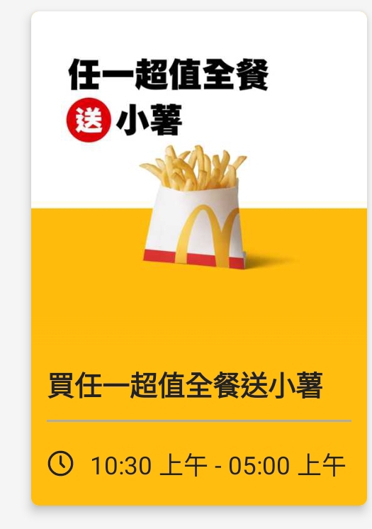alex54387: 沒吃麥當勞很久了 優惠越給越少 114.136.80.179 11/27 16:56
