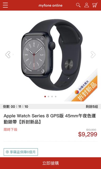 標題[情報] Apple Watch S8 45mm $9,299剩10分鐘