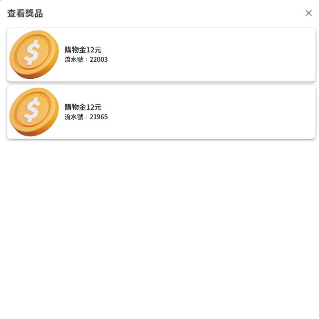 目前抽了兩天,都是購物金12元