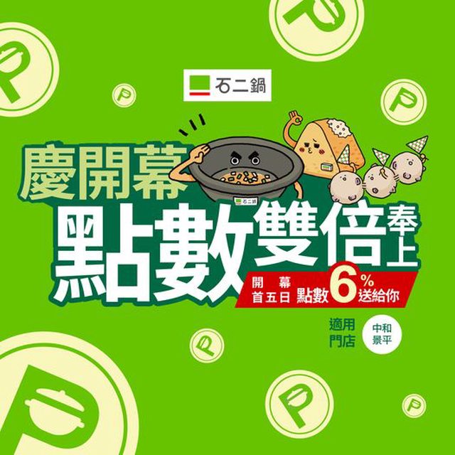 中和景平石二鍋明天開幕,前五日會員點數6%雙倍送