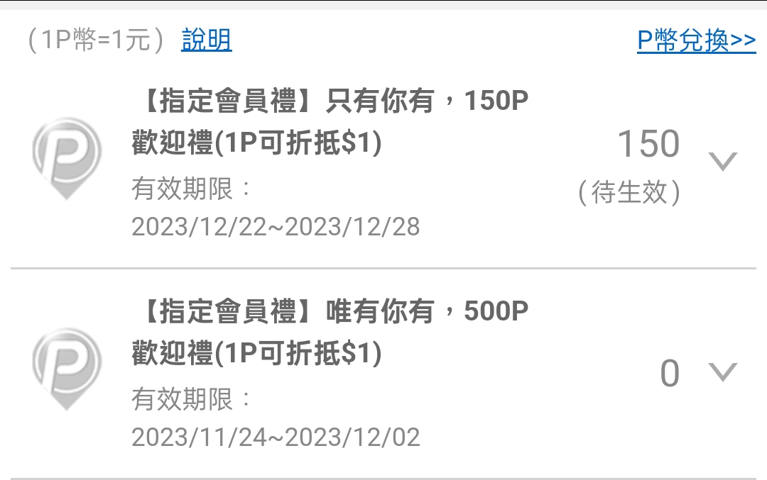 yoshihiko: 剛剛app跳出通知 贈送50p 101.10.5.35 12/22 22:04