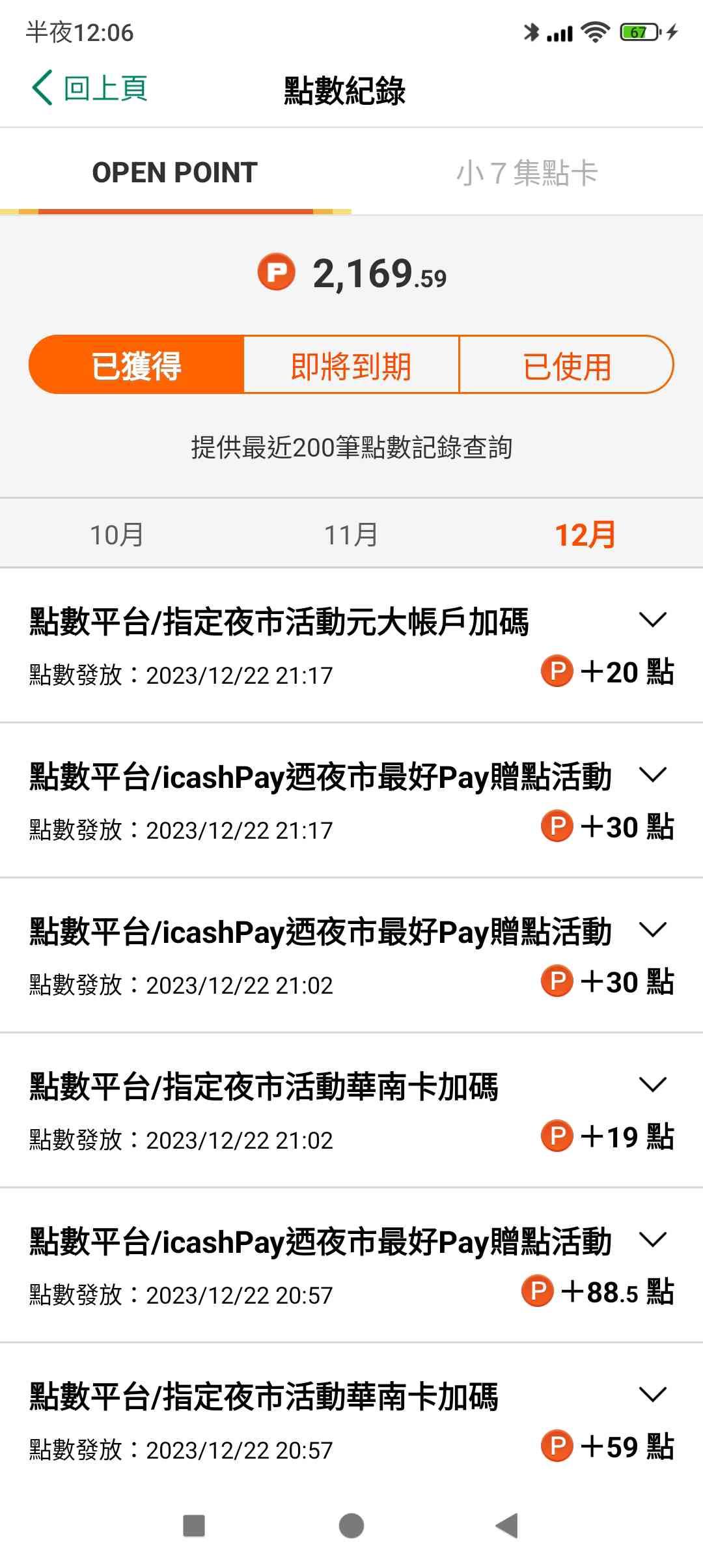 寧夏夜市、南機場夜市、艋舺夜市、華西街夜市、臨江夜市 天天回饋 >> 不限金額消費回饋30%,每戶上限200點,花670元拿滿 銀行加碼 >> 指定銀行加碼20%,加原本的直接回饋50%,花500拿250點 【活動期間】2023/12/22~2024/1/7 【活動方式】 筆筆消費回饋30%OPEN POINT,每戶上限200點OPEN POINT(活動總上限40萬點) 【銀行加碼】 1.華南銀行 以icashPay綁華南信用卡付款筆筆消費再享20%回饋OPEN POINT,每戶上限100點OPEN POINT(活動總上限20萬點) 2.元大銀行 以icash Pay連結元大銀行存款帳戶直扣付款筆筆消費再享20%回饋OPEN POINT,每戶上 限100點OPEN POINT(活動總上限10萬點) https://i.imgur.com/db4Lqzt.jpg