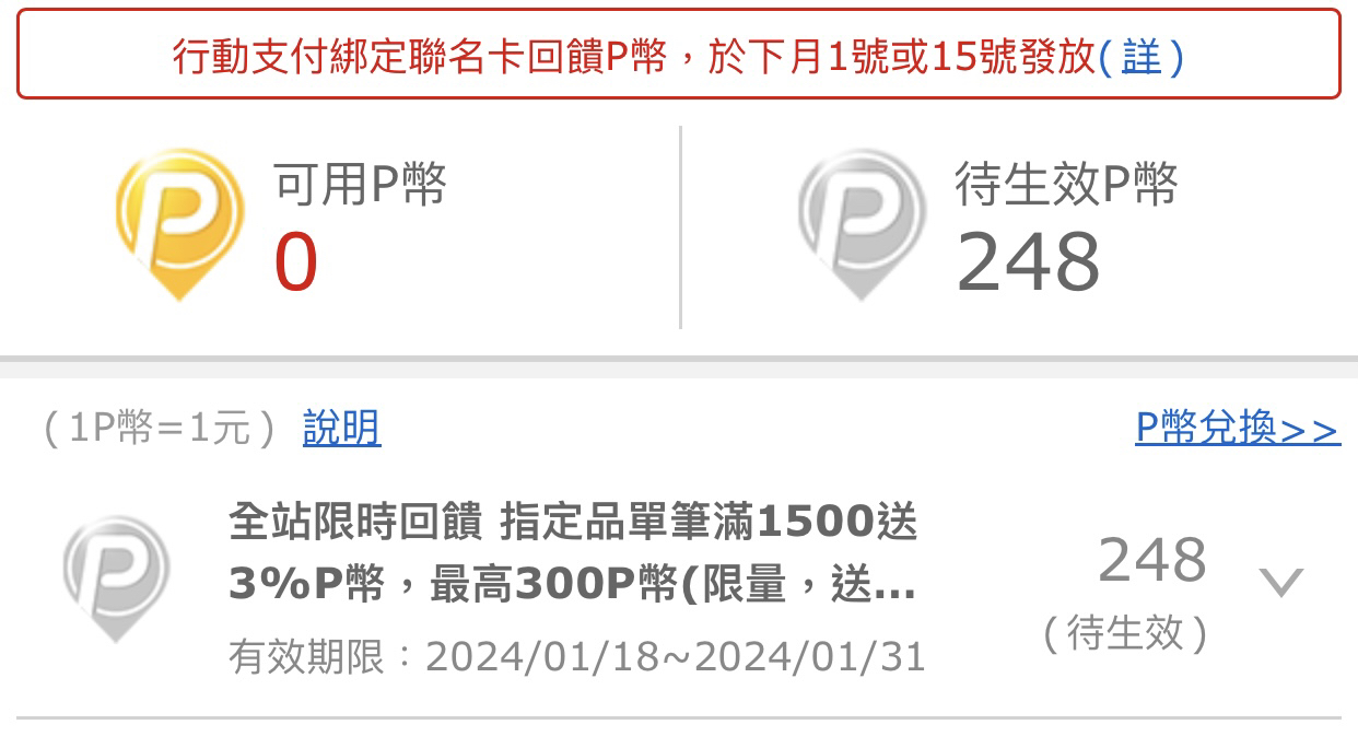 Janius: 更新,目前確認有看到3%P幣+1% Line點 114.37.172.228 01/04 20:42