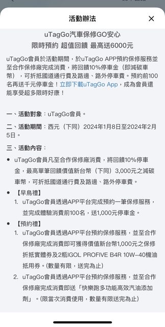 uTagGo APP上有看到保修預約活動,送蠻多的覺得不錯