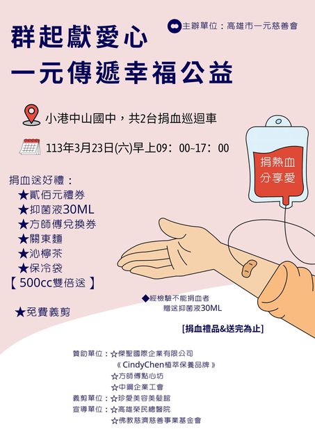 〝〝〝高雄捐血中心臉書粉絲團:https://www.facebook.com/TBSFksblood〞〞〞