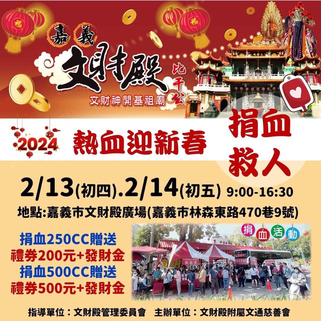 2/13~14(二和三):嘉義市林森東路470巷9號 09:00~16:30 送禮券$200/$500+發財金