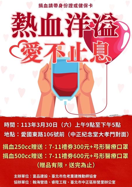 〝〝〝台北捐血中心臉書粉絲團:https://www.facebook.com/taipeiblood〞〞〞