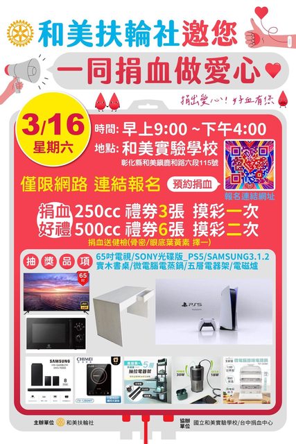 3/16(六):彰化和美實驗學校 09:00~16:00 送禮券3張+摸彩1次/加倍送