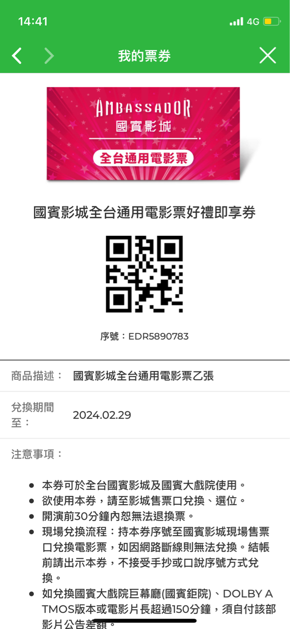 推 KCinTW: 贈今天到期之國賓影城即享券,如取用請下 42.79.146.168 02/29 14:43
