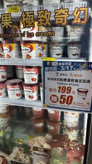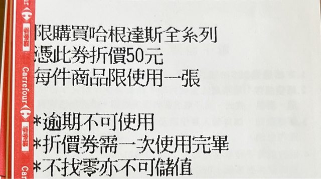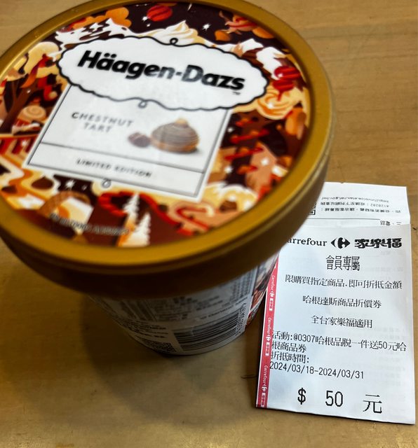 剛逛到家樂福。哈根達斯一品脫199 會員再送折價卷50元。 3/18~3/31可以使用 https://i.imgur.com/2ysN6S2.jpg