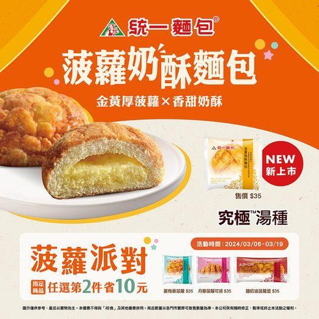 7-11 時間是3/6-3/19 4種波蘿麵包(最便宜的$35) 第二件減10元 - 「這些是我自己帶來的呀,是不是帶了波蘿麵包就不能再叫波蘿麵包啊?」 -- ※ 發信站: 批踢踢實業坊(www.ptt-club.com.tw), 來自: 223.137.134.69 (臺灣) ※ 文章網址: https://www.ptt-club.com.tw/Lifeismoney/M.1710136209.A.B14