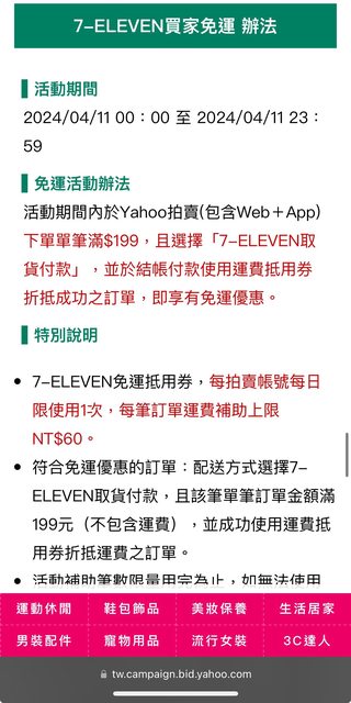 標題[情報] Yahoo 7-11超取免運