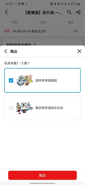 還有玩具2選1 我覺得停車場玩具送得算很有誠意 https://i.imgur.com/0kE3JWD.jpg