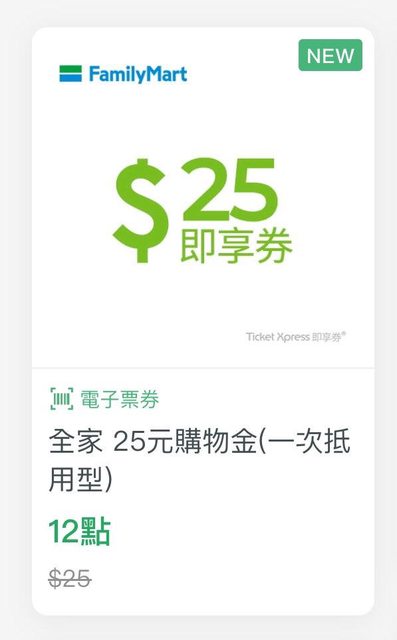 推 janghow: 感謝 / 剛好只剩12點,換全家購物金XD 125.230.80.197 04/13 11:36