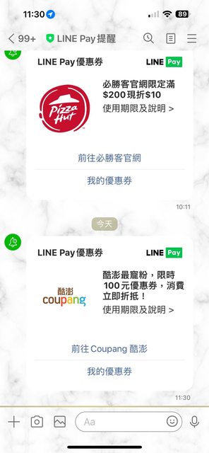 推 briareus: 有linepay-100 剛買貓糧了 1.200.170.180 04/16 15:05