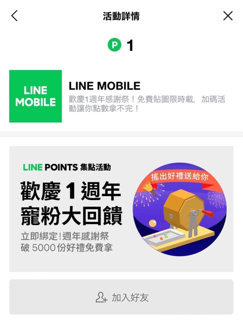加好友即可獲得一點