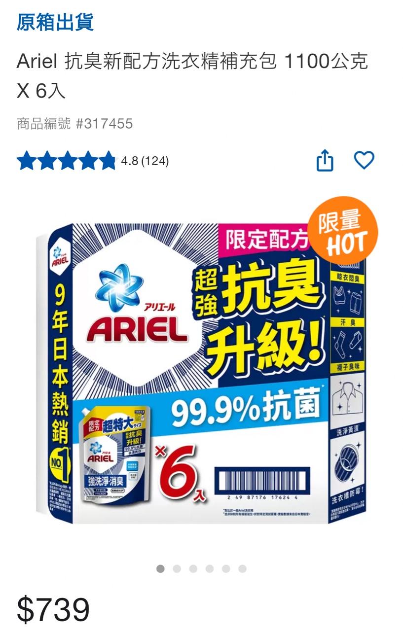 Ariel抗臭新配方洗衣精補充包 一箱6入 4/29~5/9 859-180=679 約為八折價格 需要的趕快去囤貨 但 前年的包裝一包為1260公克 今年的包裝一包為1100公克 若今年特價價格與前年價格相同 則調漲14% -- ※ 發信站: 批踢踢實業坊(www.ptt-club.com.tw), 來自: 49.216.22.59 (臺灣) ※ 文章網址: https://www.ptt-club.com.tw/Lifeismoney/M.1714406558.A.1C1