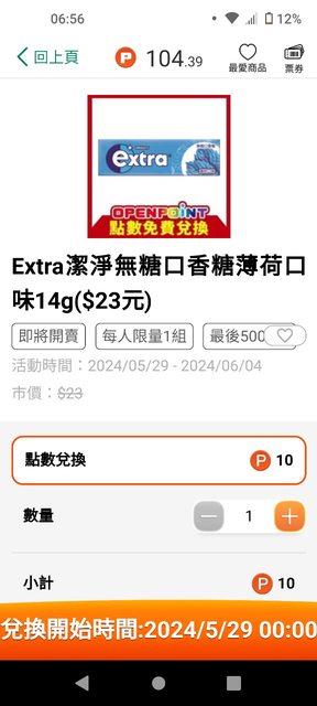 標題[情報] openpoint換extra口香糖