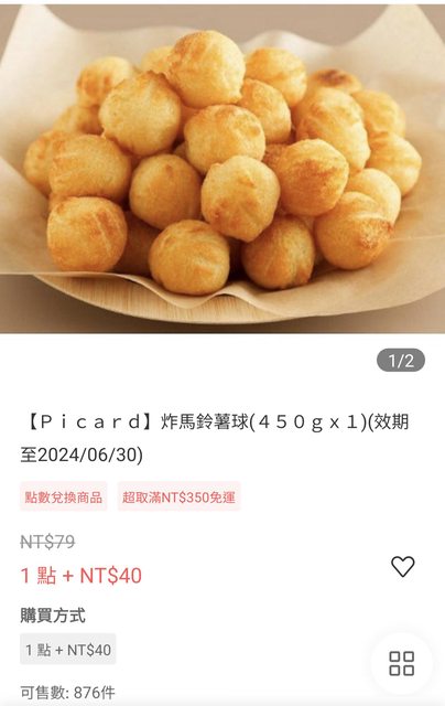 最近全家行動購 有很多picard的冷凍商品即期打折 而且350就免運到門市 而且都是很好吃的 冷凍商品 最推這個薯球 現在一盒只要1點+40 全家會員消費1元=1點 【Picard】炸馬鈴薯球(450gx1)(效期至2024/06/30) https://tw360.page.link/tS2k http://i.imgur.com/eKGuznk.jpg