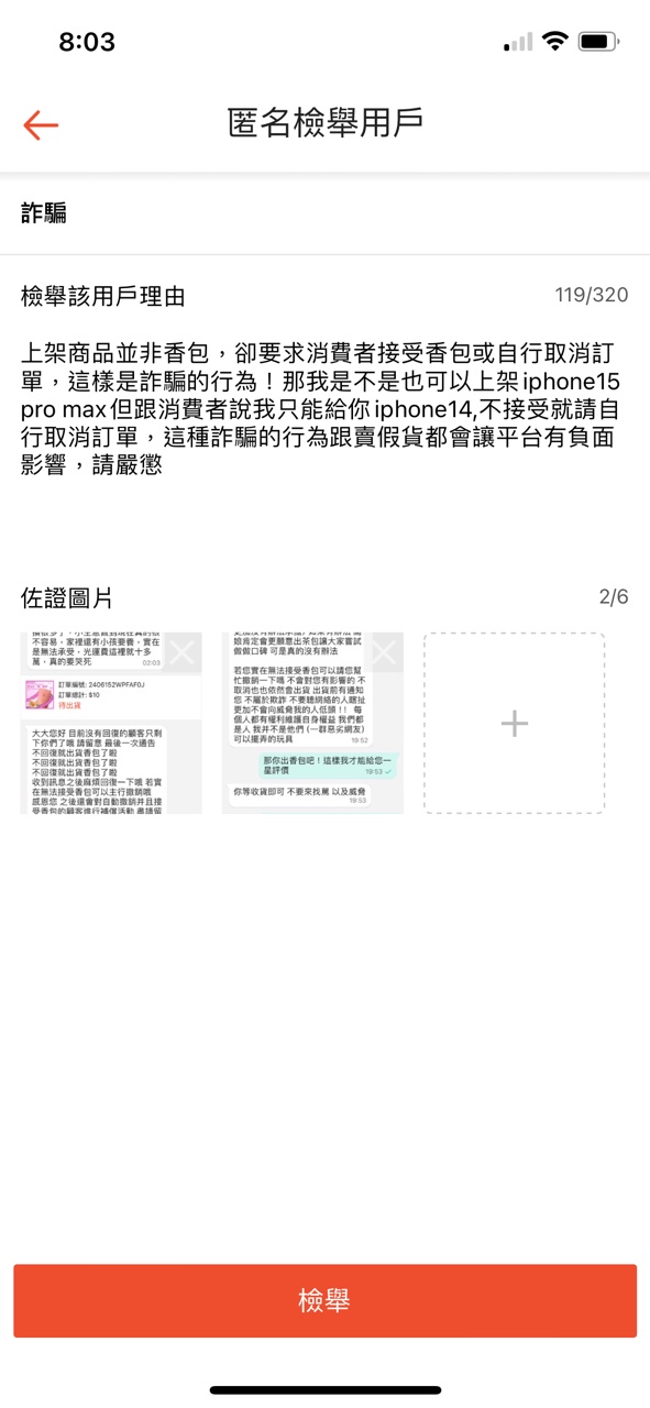 → hsh92123: 蝦皮檢舉 59.127.173.193 06/16 12:23