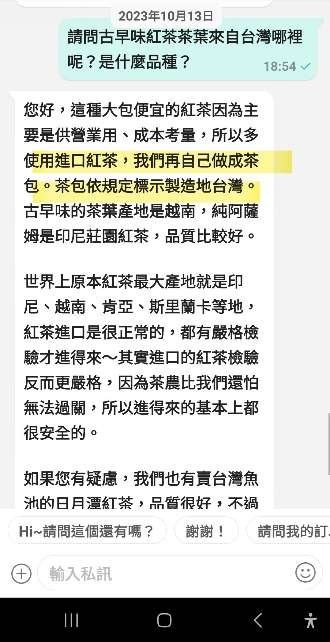推 spidery: 以前蝦皮買過紅茶包,產地台灣,但也不真 112.78.86.52 06/16 08:32