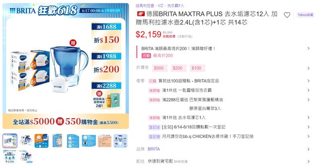 BRITA MAXTRA PLUS 去水垢濾芯12入 加贈馬利拉濾水壺2.4L(含1芯)+去水垢1芯 1壺14芯共$2,159 下單再送一匙靈洗衣霸7入 https://reurl.cc/gGoyyL 買就送100超贈點+APP購回饋5%送107超贈點 扣下來等於整組$1,952 再扣掉$699的馬利拉濾水壺2.4L(含1芯) 等於13顆橘色的去水垢濾芯只要$1,253 平均1顆$96 還真沒看過這麼便宜的 購回饋5%超贈點是要用YAHOO奇摩APP導購 不是用YAHOO購物中心的APP https://i.imgur.com/3m4coAy.jpeg