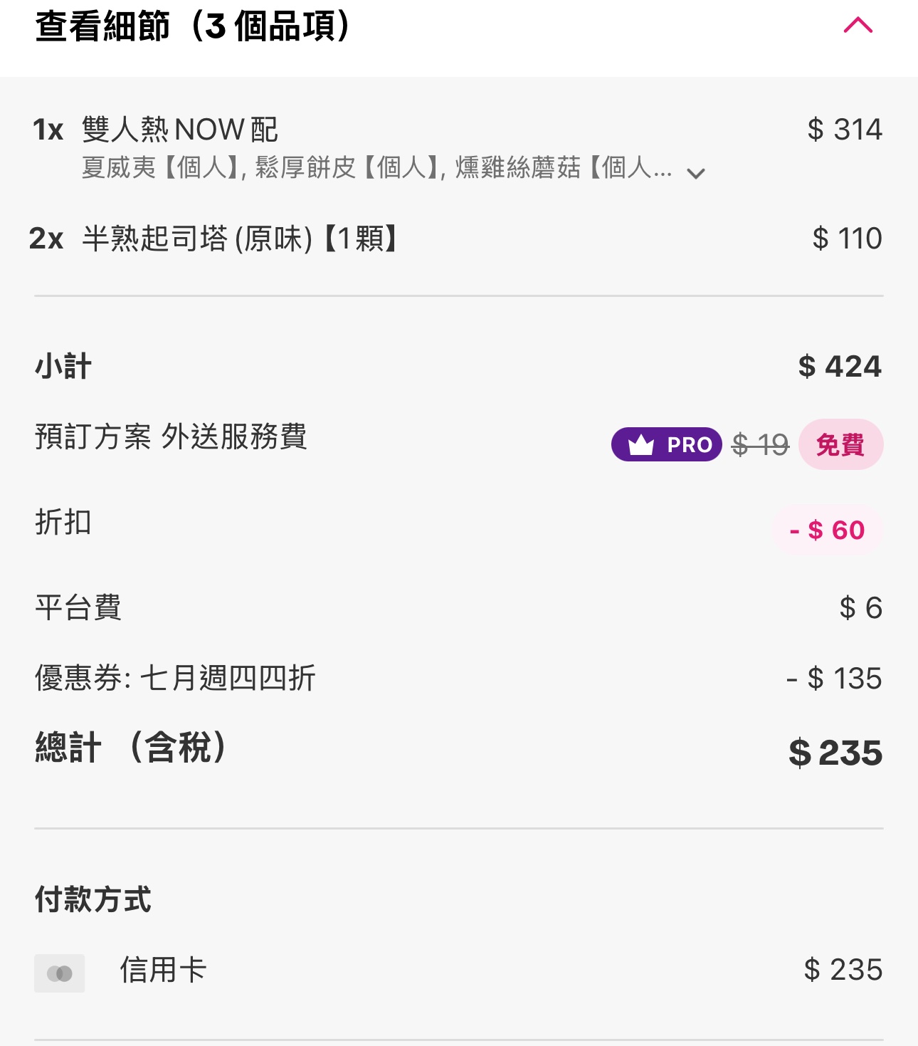 推 color345: 我沒有pro,買三份辣華堡餐+塑袋,250還可 101.12.93.149 07/04 19:36
