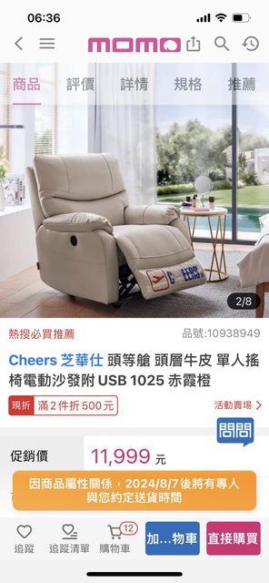 好好生活,現場標15999 momo 這樣算有折價? 有人買過嗎?品質如何? 【Cheers 芝華仕】頭等艙 頭層牛皮 單人搖椅電動沙發附USB 1025 赤霞橙【11999元】 https://momo.dm/JiNIYN https://i.imgur.com/bkfjtbl.jpeg