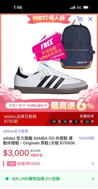 標題Re: [情報] SAMBA+送Originals後背包$3000