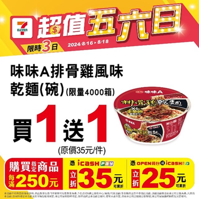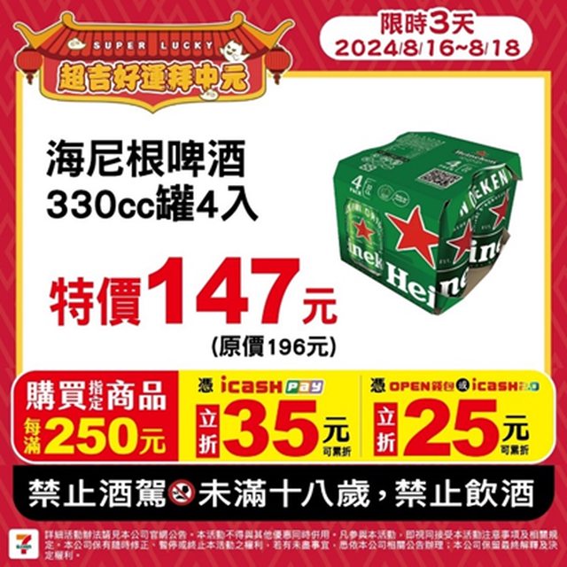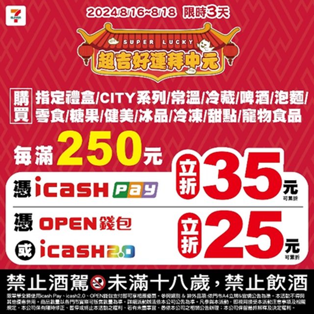 超值五六日又來了 這次優惠商品好多 8/16-8/18每滿250元,icashpay折35元;open錢包/icash2.0折25元 啤酒也都有打折 回家普渡邊拜邊喝酒 ╰(⊙-⊙)╮佛心公司 ╭(⊙-⊙)╯佛心公司 https://i.imgur.com/N8nXs6D.jpg