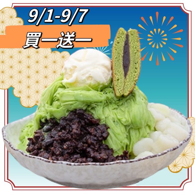 時間 : 9/1~9/7,12:30~20:00 地點 : 新竹市東南街130號(新竹後火車站) 優惠 : 宇治金時(150元)買一送一 https://i.imgur.com/G5EBJsW.png