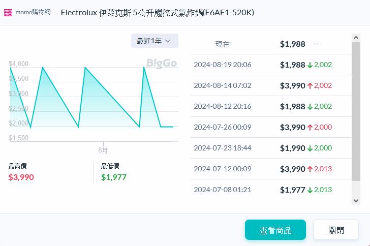 桃子網 伊萊克斯 5公升觸控式氣炸鍋 $1988 8/23一日限搶 應該是歷史新低了,以往都$3990 這台前陣子也有特價活動,不過要用活動點數換折價券,這次不用 -- ※ 發信站: 批踢踢實業坊(www.ptt-club.com.tw), 來自: 123.51.145.115 (臺灣) ※ 文章網址: https://www.ptt-club.com.tw/Lifeismoney/M.1724388708.A.4C5