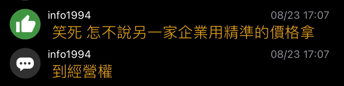 info1994: 笑死 怎不說另一家企業用精準的價格拿114.47.84.71 08/23 17:07