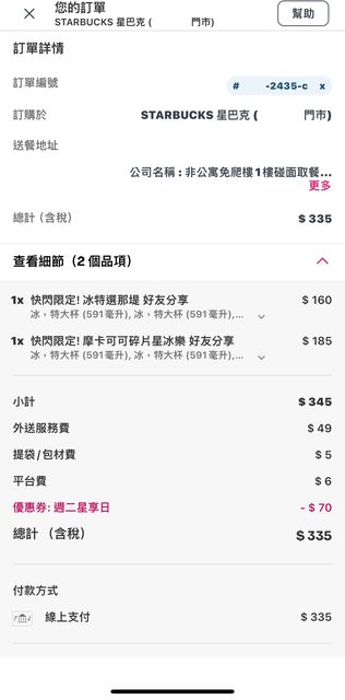 如題 今天08/27(二)星巴克在熊貓上有快閃優惠 共有2款 好友分享 1.冰特選那堤 $160/2杯 3.摩卡可可碎片星冰樂 $185/2杯 另外可以Combo星期二的專屬優惠碼 【週二星享日】 滿$279現折$70 附上人權圖: https://i.imgur.com/dCAQVqo.png