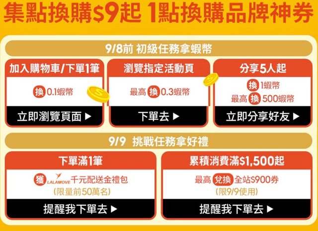 有想先下單的可以用 想用超商免運的可以先用會員的 https://reurl.cc/WNGrXk 這次還有推累積點數換蝦幣、優惠券、商品 https://reurl.cc/xv7OY4 https://i.imgur.com/xBid4GN.jpeg