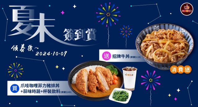 集10章:可領取三商鮮五丼-買爪哇咖哩菲力豬排丼+蒜味時蔬+杯裝飲料(共249元),送招 牌牛丼券(119元)。 https://i.imgur.com/pDfIeoC.jpeg