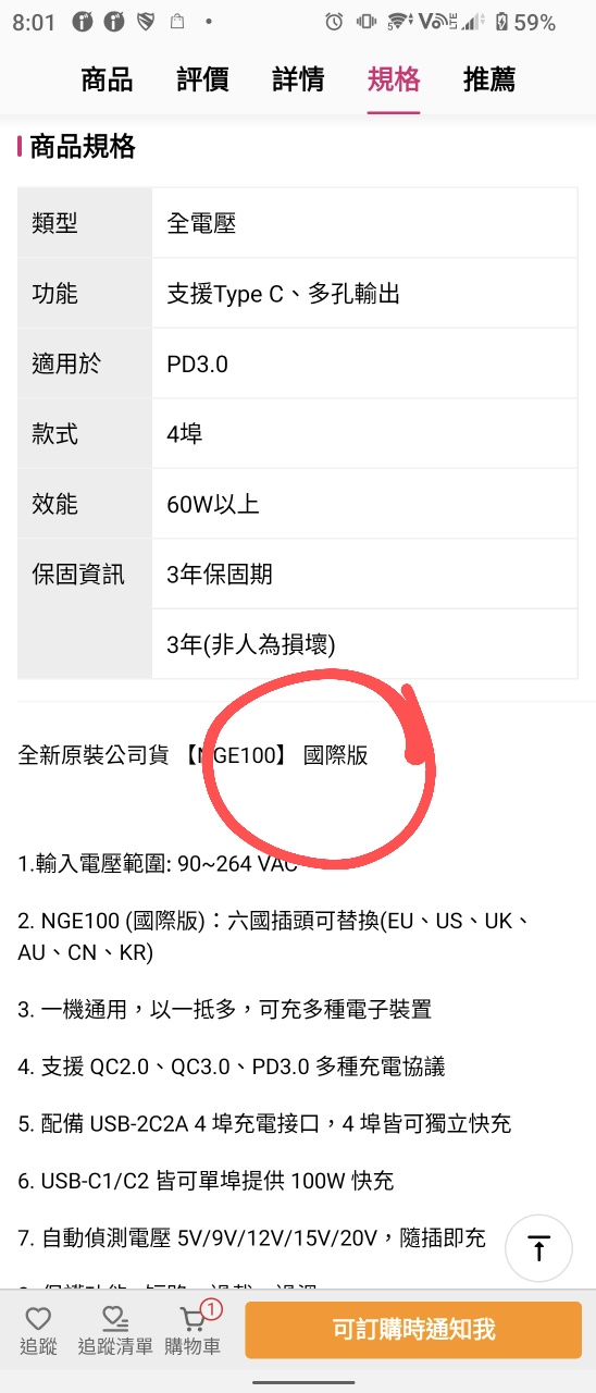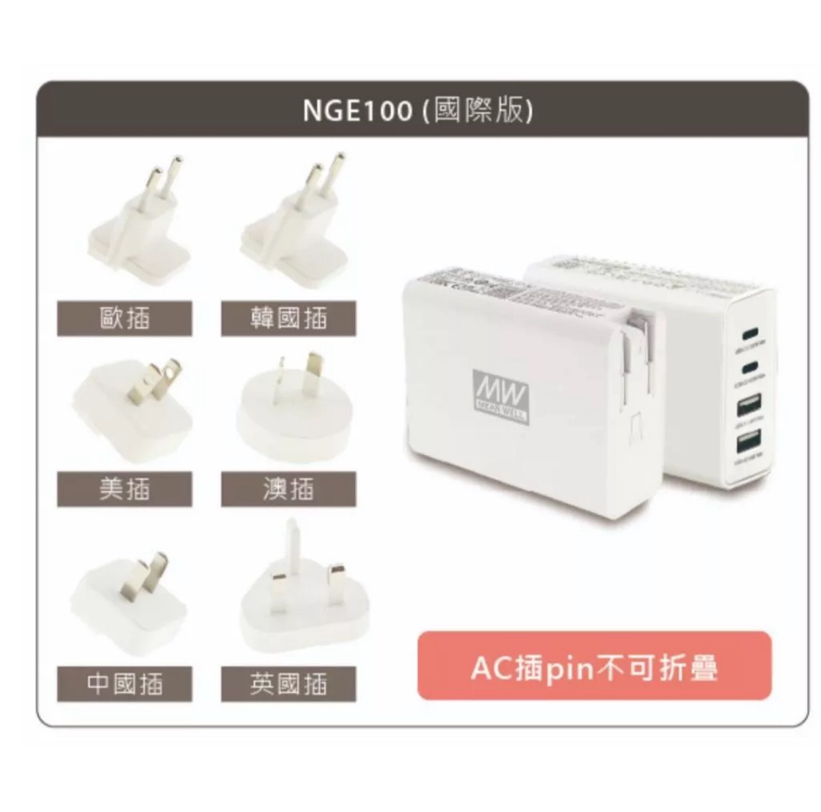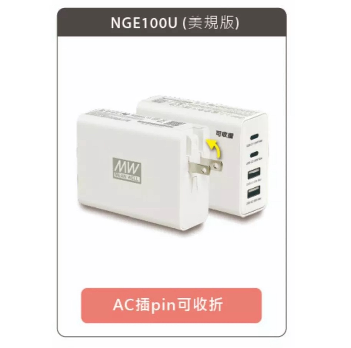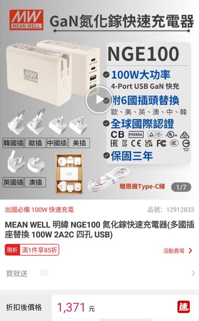 竟然發現插頭怎麼拉都拉不開,以為是有特殊裝置,沒有看到產品使用說明書。 看momo影片的示範也是插頭很輕鬆就扳開,但為什麼我的怎麼拉都拉不開 請問有版友也有像我這樣的情形嗎?還是需要什麼特殊訣竅?再請大家指導,謝謝 剛剛看MOMO都賣光了,不會只有我有遇到這個問題對嗎? 如果無解,只能忍痛退了 ※ 引述《kinjk01 (小白)》之銘言: : 最近想買新的充電器 : 剛剛搜尋時看到這款 : 100W的四孔充電器在特價 : 原價2080現在momo剛好特價1371元 : 台灣品牌 感覺還可以入手 : 【MEAN WELL 明緯】NGE100 氮化鎵快速充電器(多國插座替換 100W 2A2C 四孔 USB)【1, : 1元】 : https://momo.dm/7e7QRR : https://i.imgur.com/ZWnjznN.png