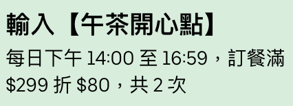 推 EggXBlueSky: 下午茶優惠是什麼啊! 42.70.67.183 09/12 15:06