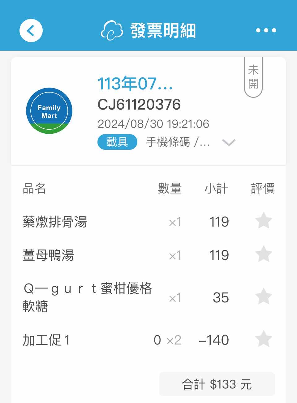 satousei: 噓全家行動購 36.225.1.210 09/13 07:57