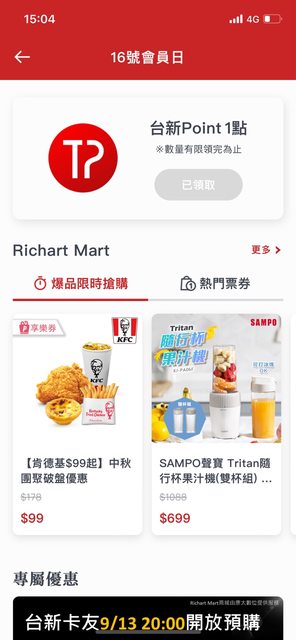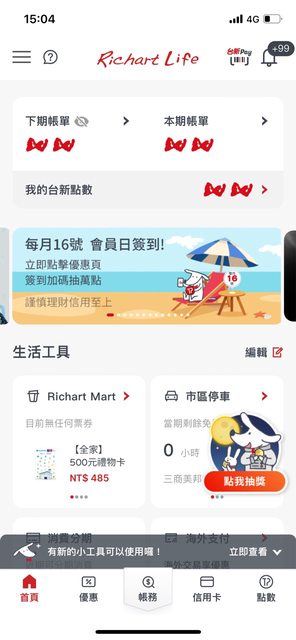 Richart Life app 16號會員日登入領取一點 https://i.imgur.com/vCvcotO.jpeg