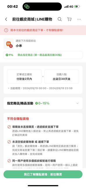另外line也有導購1%的活動,也是兩間店都有,只是回饋點數很少應該還是shopback比較