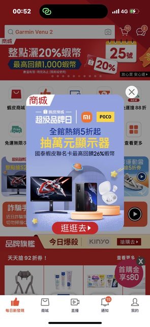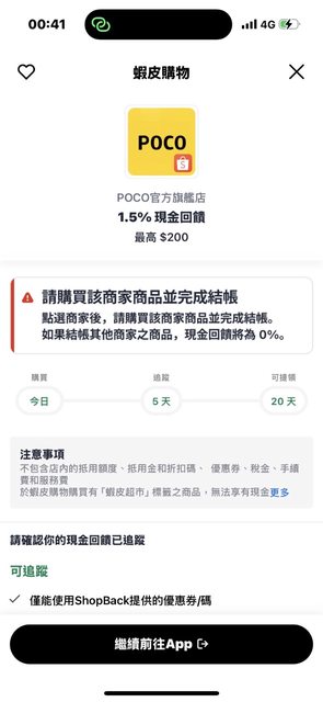 分享一下在shopback看到的活動,蝦皮小米和poco官方旗艦店有在回饋1.5%現金,印象中