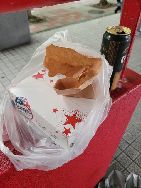 索性就在球場外有遮蔽的地方吃掉晚餐