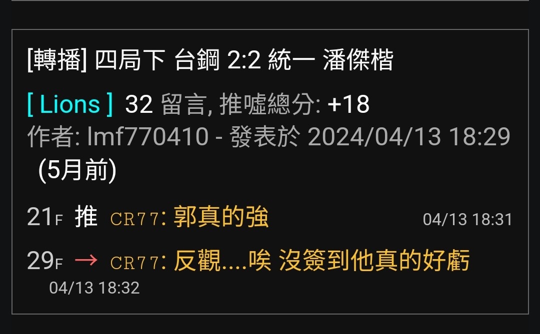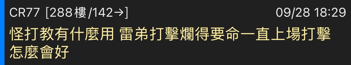 → CR77: 拿出最爛的成績 佔著中心棒次 就是欠噴 09/28 18:32
