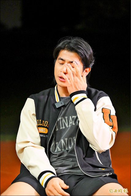 陳傑憲談及母親潸然落淚。(記者李惠洲攝)