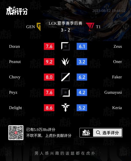 標題[閒聊] GEN vs T1 虎撲賽後評分表