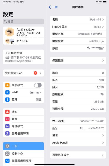 標題[販售] 雙北 iPad mini6 WiFi 256G 太空灰