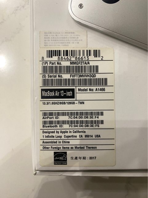 A1466 MacBook Air 2017生產early2015